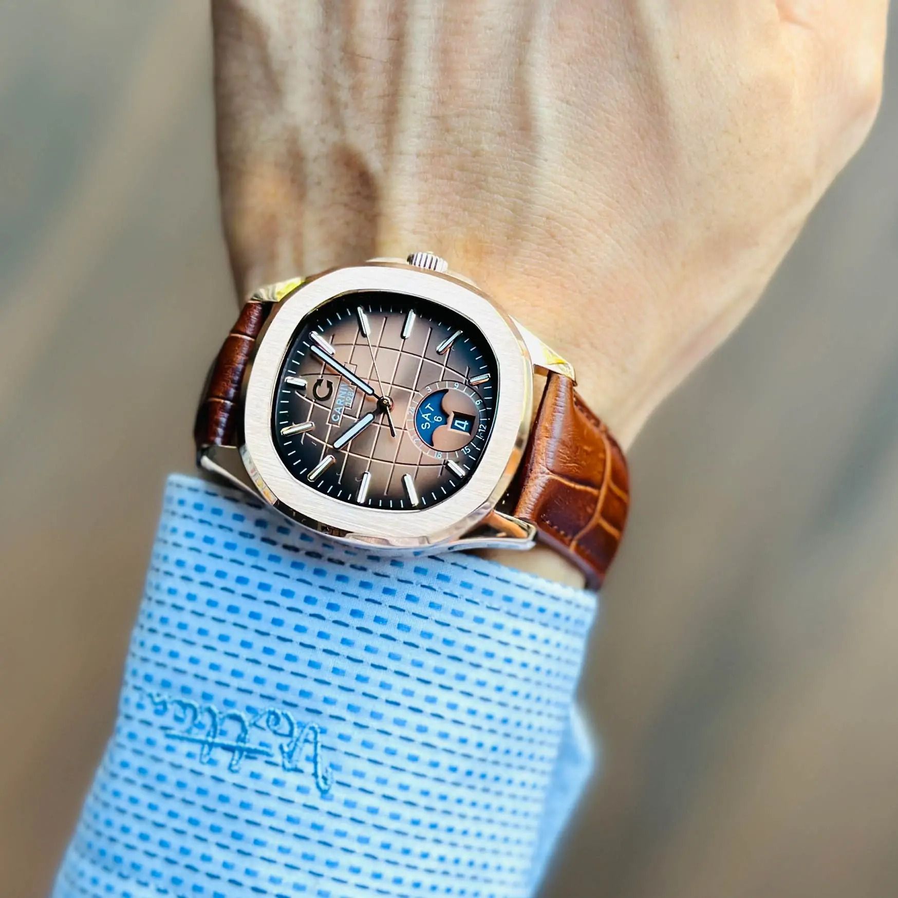 Khi dây da ẩm, không sử dụng máy sấy vì có thể làm cong hoặc làm cứng dây đồng hồ.